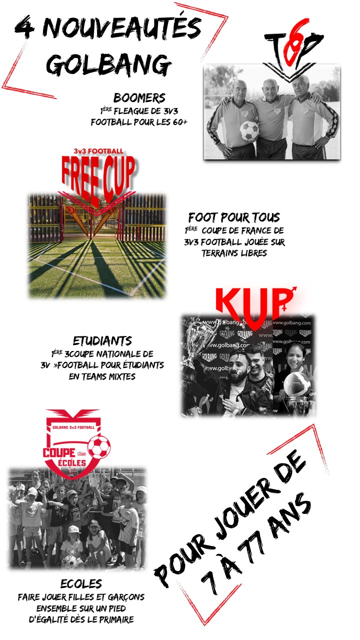 La Fédération Française des Clubs Omnisports a sélectionné le Golbang 3v3 Football parmi les nouvelles pratiques destinées à élargir la pratique sportive auprès de ses 600 clubs et 750 000 pratiquants.