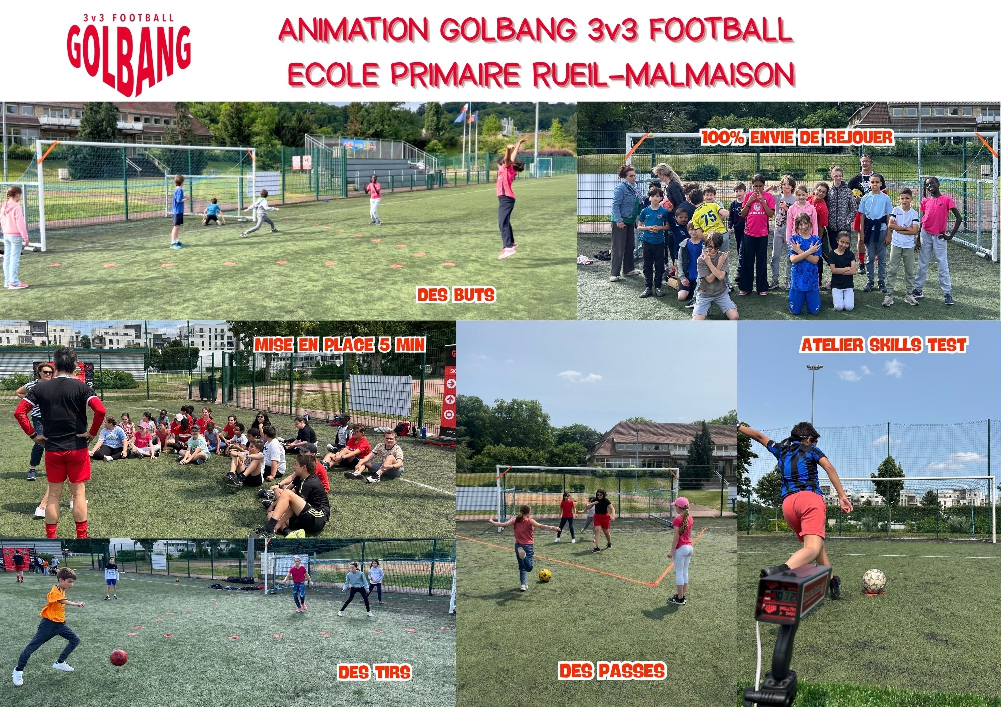 Le 13 octobre l'animation Golbang 3v3 football sur le nouveau terrain 3v3 multisports a permis de faire jouer plus de 100 élèves de 3ème, de 6ème et de primaire en mode mixte ! Les filles et garçons, ainsi que leurs enseignants et les membres du conseil municipal, ont découvert le Golbang 3v3 football et ses règles simples mais innovantes qui permettent à chacun de passer, tirer et même marquer quel que soit son niveau ! Pas de contacts, pas de dribbles, pas de longues courses, juste des passes, des sauts et des tirs pour un maximum de fun lors des battles. Ce terrain 3v3 multisports, le 1er de ce type dans l'Aube, permet de jouer au basket 3x3 et au foot 3v3 en même temps et sur le même terrain pour diversifier les sessions EPS et élargir les publics utilisateurs
