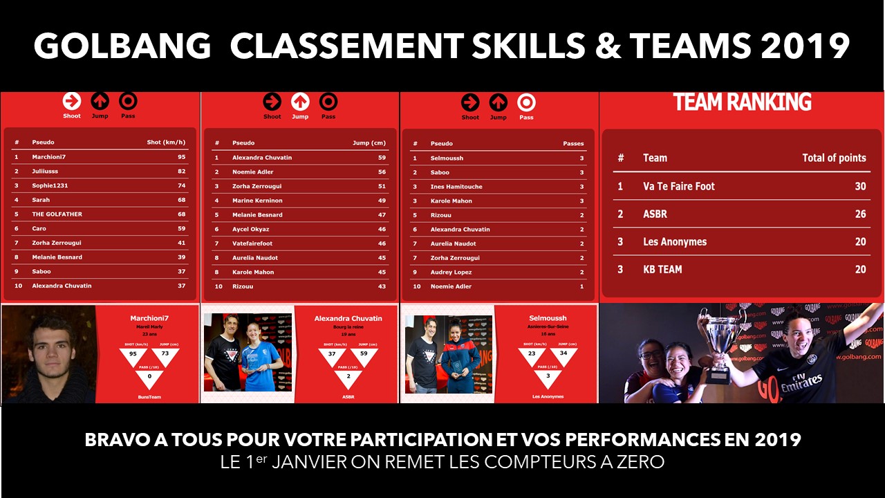 LES CHAMPIONS ET CHAMPIONNES GOLBANG 2019: CLASSEMENT SKILLS & TEAMS