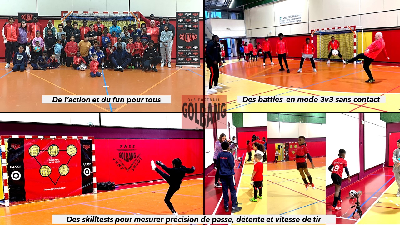 Le 16 décembre à Torcy, grâce à l'association Evasion Urbaine et Bakary Cissé, une quarantaine d'enfants, d'éducateurs et de parents ont pu découvrir le Golbang 3v3 Football à travers des battles en mode 3 contre 3 sans contacts et les skilltests PASS/JUMP/SHOOTpermettant de mesurer précision de passe, détente et vitesse de tir.