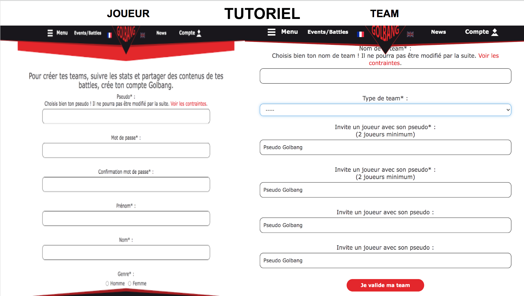 Créer sa Team de Golbang est très simple, il suffit d'abord de créer son profil perso puis sa Team.